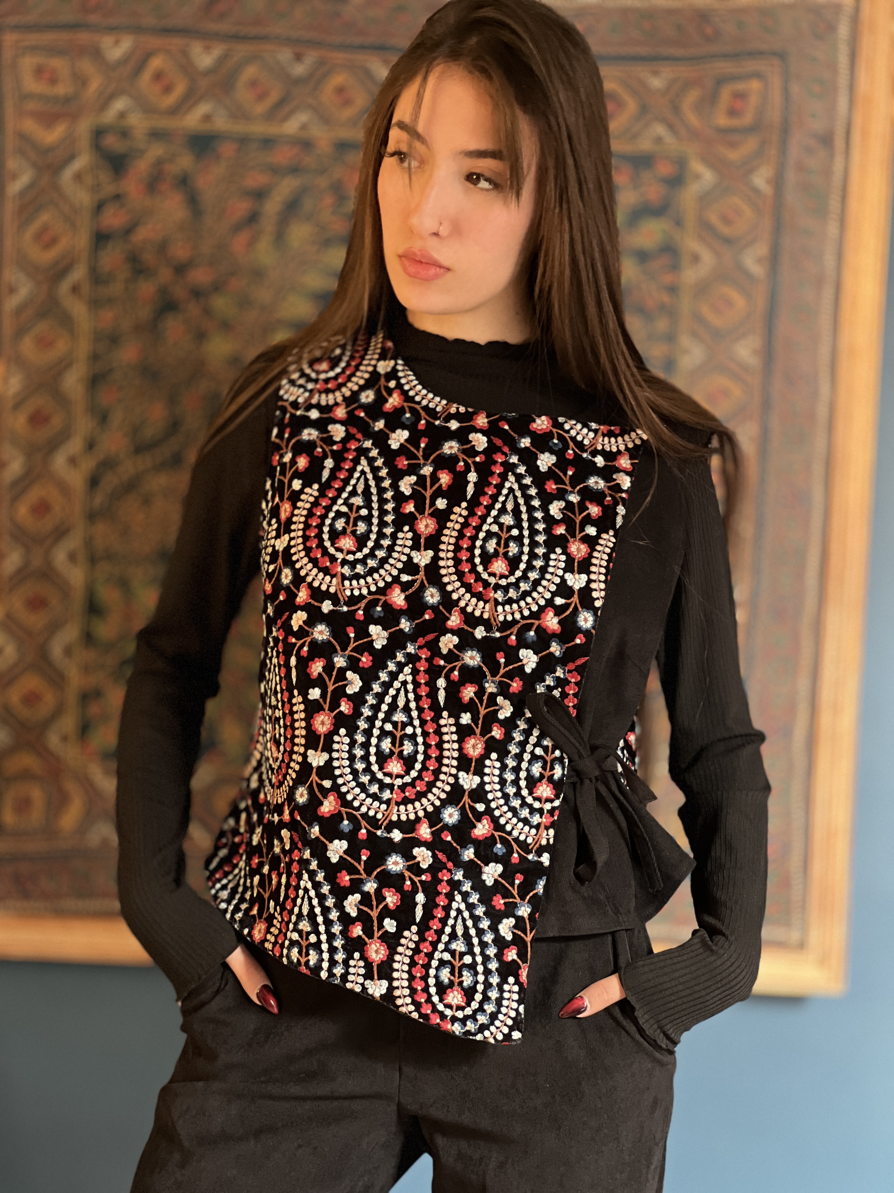 جنس پارچه مخمل سوزندوزی قابل استفاده به عنوان ژیله و تاپ موجود در دو سایز سایز ۱ دورسینه تا ۹۸ سایز ۲ دور سینه تا ۱۰۸